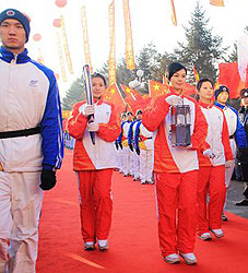 The torch relay lasted 6 days and covered a distance of 2,009 km. Altogether 600 torchbearers with 3,500 escort runners in the Heilongjiang Province participated in the relay.