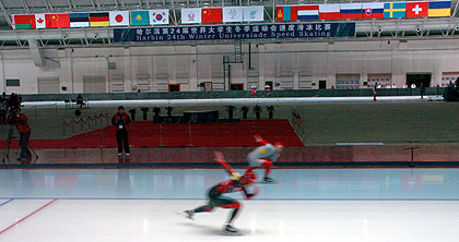 More Asian domination in the Heiljongjang Speed Skating Oval, were Korean Lee Kang Seok beat Zhang Yaolin and Yu Fengtong on the 100m in front of a full capacity crowd.