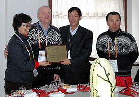 There was some excitement in the Maoershan venue for the visit of FISU President George Killian, and of his wife. Mr. Killian was hosted by the Mayor of the Village, Mr. Xu Wendong, by the Vice-Mayor and by our Vice-Chair of the Ice Hockey Technical Committee Mr. Zhiqiang, who is the coordinator of all the events that are taking place in Maoershan. Mr. Killian had the opportunity to visit the FISU Office which also hosts the CIC Committee. From there he could have a wonderful view over all the snowboard venues. Although protocol is a very serious matter, Mr. Killian took the time to see the sports venues. Just after the flower ceremony of the biathlon 10km sprint, he could meet the Technical Delegate Ubaldo Pruckner and CT Chair Andres Rybar and tell them how impressed he was by the venue and the way they had collaborated in order to build it. Just after biathlon Mr. Killian jumped into a grooming machine to climb the hill to the half pipe venue and to see the men’s qualification heats both won by a Chinese rider. He took also the time to meet the FIS Technical Delegate Mister Peter Krogoll and the CT Chair Mr Wojciech Golebiowski. After a quick ski doo trip it was time for lunch and a return to Harbin.