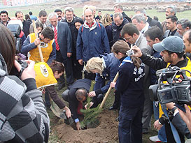 The tree planting ceremonyLater in the morning the Governor of the Erzurum Province, Sami Bulut, joined the FISU Group. Together they participated at a Tree Plant Ceremony. The OC plans to plant exactly 2011 new trees as they also recruit 2011 volunteers. On the hill between the Athletes’ Village and one of the Ice Stadiums, the new Jumping venue “Kiremitliktepe” will be constructed for a total amount of € 27 Mio. On the hillside this new forest will be visible in 2011.