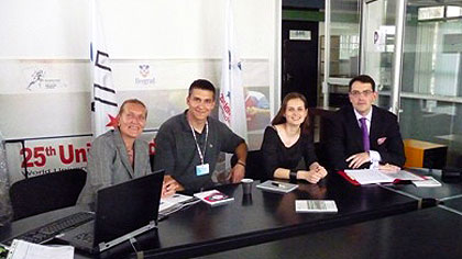 On Monday May 11th, 2009, the Director of the Summer Universiade, Marc VANDENPLAS, as well as the Director of Protocol, Kole GJELOSHAJ, together with the Coordinator of Medal Awarding Ceremonies, Nicole MANGELSCHOTS travelled to Serbia for a three day meeting with the Organizing Committee of the Universiade in Belgrade.
