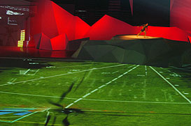 Little Ana The participants witnessed a high-tech performance of cybernetic works created out of computer-electronic, organic and time and space systems, transformed into a dance performance. A beam of light coming out of the projector animated the stage, portals and the 700 m²-Arena floor and created illusion of movement. The audience witnessed the floor change from swimming pool to basketball court to football pitch to finally turn into a dance stage where the Universiade participants saw a choreography performed by some thirty local students blended with the fusion of traditional sound, ethno-musical motives and modern vibrations while a stream of consciousness of thoughts lead the spectators through the spectacle of light, dance and computer art.