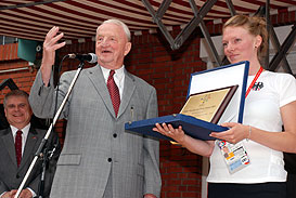 President Killian contemplating on the FISU Women’s Award won by ADH