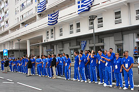 The Greek President was taken on a small tour through the Village which ended by meeting the Greek delegation which presented him with a volleyball and basketball signed by the teams.