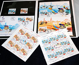 The Post Office in the Athletes’ Village is a big hit. Enter it at any particular moment during the day and you will find people in there buying the official postcards of the Universiade. However, the most important item for sale for stamp collectors is without doubt the official stamps of the 25th Universiade, issued especially for these Games.