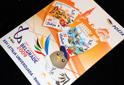 Besides the two stamps, the Serbian post also published a Universiade special booklet collectors’ item with the two stamps, two postcards with stamp and cancellation and an envelope with both stamps and cancellation.