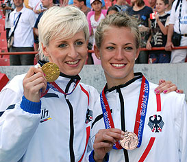For Heidler, the German World Champion in Hammer Throw, the first attempt in Belgrade was a complete success: she threw 75.83 meters, broke Michaela Melinte’s Universiade-Record of 1999, got a new season’s best and won gold. With this medal the 25 years old law-student of Frankfurt/Main reached her first big aim for this summer. Heidler and her trainer, Michael Deyhle, had big smiles on their faces after the competition: “We are very happy about this result and we reached our aim exactly. This was a very important competition before starting in Berlin”, they explained.