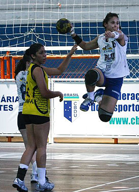 High-level athletes participate in the handball tournament as well. Guilherme Rosa and Léo Bortolini won gold at the 2007 Pan-American Games in Rio and participated in the 2008 Beijing Olympics with the Brazilian team. Here at the CBDU University Games they now are on opposite sides: Bortolini plays for Paraná and Gui Rosa for São Paulo. And Aline Pará plays for the Santa Catarina handball team in these CBDU Games. She won gold in the 2003 Pan-American Games (Santo Domingo) and 2007 (Rio de Janeiro) and participated in the 2004 Olympic Games in Athens as well as in Beijing in 2008.