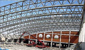 The structural work of the 500-spectator ice-hockey rink planned to be used for the Women’s Ice Hockey competition is completed. At the moment, frame-roofing installation is carried out and covering will start shortly. Four more changing rooms were added in this 500-spectator rink, and the number of the total changing rooms is 12 now. The structural work of the 3,000-spectator ice hockey rink is about to be completed as well. Frame-roofing will be installed.
