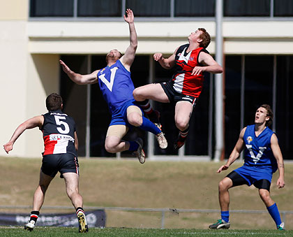 Students from the Victoria University and La Trobe University playing Australian Rules Football on day 2 of the Games (photo: Paul Merrett)