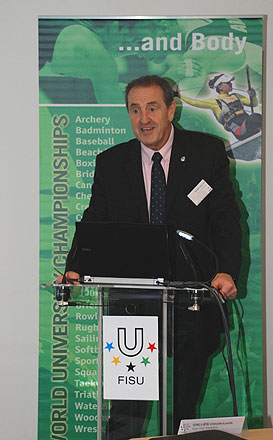 ‘We are a dynamic organization moving from 1 to 10 WUC in 25 years, then from 10 to 20 in ten years time and increasing again to reach 29 World University Championships that will be staged in 2010, all around the world on the five continents and with no less than 7,000 participants’, FISU 1st Vice-President Claude-Louis Gallien said in his welcome speech. ‘I give a special interest to the fact that our WUCs receive great attention from the academic community. It is of extreme importance that our student-athletes, together with their coaches, trainers and professors can exchange, communicate and share experiences.’ Mr. Gallien also praised the OCs of the WUCs. ‘You in the Organizing Committees are volunteers, you are the ones that are able to manage human resources and you are the ones that humanely manage resources through University Sport. You are also becoming more professional in managing your organizations allowing students to acquire a unique international experience. As part of the FISU Family you act as true educators using sport as a wonderful educational tool. I thank you for that.’