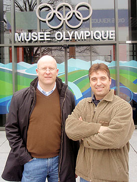 WUC Director Laurent Briel with Archery Technical Chair Juan Carlos Holgado at the Olympic Museum in Lausanne