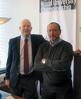 WUC Director Laurent Briel with Rowing Technical Chair Lionel Girard at the FISU Lausanne OfficeThe FISU office in Lausanne welcomed the World University Championships Director Laurent Briel for a string of work meetings with international federations located at the Maison du Sport International.