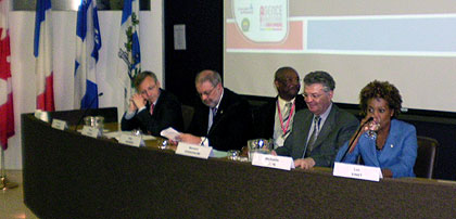 The conference was attended by the Governor General of Canada, Her Excellency Michaelle Jean, who is from Haitian descent and the Minister or International Relations of Quebec Pierre Arcand.