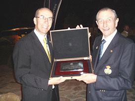 Angel de la Riva Gómez, President of the Real Federación Andaluza de Golf (r), presenting a gift to FISU Assessor Leonz Eder (l)Opening Ceremony