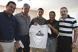 FISU Vice-President Luciano Cabral (c) with Carlos Nunes, President of Brazil Brasketball Confederation (holding the T-shirt)