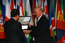 FISU President Killian presents the Vigo Mayor a FISU souvenir