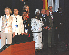 Mrs. Odell, CESU Vice-ChairWelcome speeches were delivered by Santiago Domingo, Deputy-Mayor of Vigo and Honorary Chair of the OC; José Ramon Lete, Secretary-General for Sport of Galicia; Abel Caballero, Mayor of Vigo; Alberto Soler, -Director of the National Sports Council of Spain (CSD) and FISU President George Killian. ‘I’m very moved when I see al these countries’ flags on the podium’, Mr. Killian said. ‘When we started out with the Forum, there weren’t that many. I thank the OC for their hard work in preparing this 10th edition.’ At the end of his welcome speech, when the FISU President officially pronounced the Forum open, the FISU flag entered the venue while the FISU anthem ‘Gaudeamus Igitur’ was played. Then the floor was given to 1st FISU Vice-President and CESU Chair Claude-Louis Gallien who gave an overview of the 6-day academic event with as main theme: ‘University Sport: A Platform for Change’. The ceremonial part ended with the presentation of the CESU members to the Forum participants. The opening was celebrated with a cultural performance by a local music group with traditional instruments.