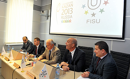 The press conference was attended by Vladimir Matlashevsky, Deputy Director of the Department of normative and legal groundwork for the state policy of the Ministry of Sports, Tourism and Youth Policy of the Russian Federation; Vladimir Leonov, Director General of the Kazan 2013 Executive Board; Azat Kadyrov, Deputy Director General of the Kazan 2013 Executive Board. On the FISU part the meeting was attended by the Chair of the FISU CTI Stavros Douvis, FISU Director for the Summer Universiade Marc Vandenplas, sports programs manager Michal Buchel and FISU Director for Media and Communications Dejan Susovic.