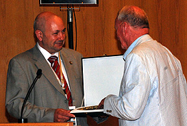 President Killian presents the Vice-Rector a souvenir