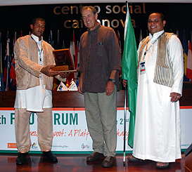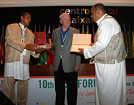 In the meanwhile, FISU President was honored by the Volunteers of the Forum as they presented him with a Red Volunteer T-shirt of the Forum. Mr. Killian is a keen supporter of the Volunteers and always stresses the fact that without volunteers the FISU events could not be organized. The majority of the Forum volunteers are students enrolled in the Faculty of translators and interpreters of the University of Vigo, appreciative of the occasion of the international Forum to practice their language skills.