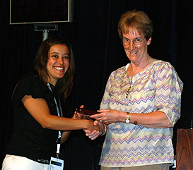 Marisol from MEX receives the award from Mrs. Odell