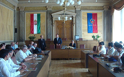 NYIREGYHAZA – Today, June 30th, FISU delegates M. Dymalski, F. Taborsky, A. Sharp and D. Lalosevic were invited to the Nyiregyhaza City hall together with all Heads of Delegation and referees. They were welcomed by Laszlo Nagy, the Vice-Mayor of Nyiregyhaza who delivered a short speech.