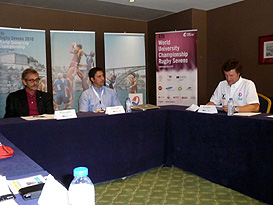 PORTO (POR) – With the last preparations to host the 4th World University Rugby 7s Championship in full swing, the Organizing Committee met with the CISCA today. Present at the meeting for the OC were Prof. Manuel Janeira, OC President and Mr. Bruno Almeida, OC Vice-President. They met with the CISCA members chaired by Mr Luciano Cabral, FISU Vice-President; Mr. Alberto Gualtieri, FISU Technical Chair for Rugby 7s; Dr. Tom Crisp, Medical Committee; Mr. Eugenio Meschi, CIC and Laurent Briel, Director WUC. They were also joined by Mrs. Beth Coalter, IRB delegate.
