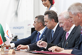 The President of Tatarstan, Mr. Minnikhanov, the Russian Minister of Sport, Tourism and Youth Policy, Mr. Vitaly Mutko, and the President of the Russian Students Sports Union, Mr. Oleg Matytsin, also joined to sign the Memorandum.