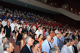 After the march pass of all delegations through the city, Prof. Dr. Szabo, Rector of the University of Szeged welcomed the delegations. Dr. Verena Burk, FISU Assessor, explained that FISU is really proud to have chosen Hungary for the organization of this event, with such a competent team of organizers and officials. The City of Szeged, as well as the Hungarian Rowing Federation and the HUSF of course were warmly congratulated for their efforts.