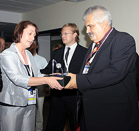 Verena Burk presents a FISU souvenir to the Vice-MayorAfter the speech of the President of HUSF, Mr. Pal Vincze, the Vice-Mayor of Szeged, Mr. Pal Szentgyörgi, officially declared the 11th edition of the World University Rowing Championship open.