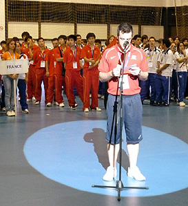 The Opening Ceremony took the place in the Sports Hall “Spens”. Well prepared by the Organising Committee, it started at 21h00. The Serbian anthem was played, flag of the host country hoisted on the pole which was a signal for the spectators and athletes that the ceremony begun. All participants enjoyed the march parade following their flags and banners with the names of the countries. The teams were set up according to FISU protocol in the alphabetical order. All participants were warmly welcomed by the speakers as followed: the president of the Organising Committee Zoran Delic and by FISU EC representative, Mr. Pedro Dias, who asked the Mayor of Novi Sad Mr. Igor