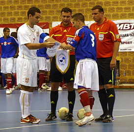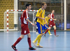 UKR vs. GBRUkraine started to play its second game very well and after a short time scored two goals. However, GBR played the first half mostly in a well organized defence and once they had the ball on their feet they tried to keep it there as long as possible to avoid another fast contra-attack. UKR came to the changing room after the first half with a convenient advantage of two goals. During the second half both teams showed a very nice futsal game. We did not see to many goals but both teams played up and down with a lot of occasions to score. Eight minutes before the end GBR scored its first goal of the tournament with a nice shot under the cross bar. After the goal they jacked up the pressing on the ball when UKR turned around and every-time they gained the ball went into a fast contra-attack. They put all effort to score one more goal, equalised the game and took one point away of the group favourite UKR.