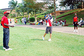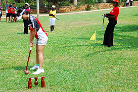 KAMPALA – The World University Woodball Championship competition took off yesterday, August 23rd, by the shores of Lake Victoria near Kampala, Uganda. The 1st round singles men and women started in the morning and ended in the afternoon, completing the 24 gates.