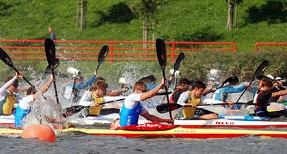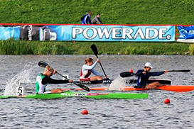The first final of the afternoon session, the K1-200 meters, was a very close race – but this was of course obvious – and at the end of an epic sprint, the athlete from Latvia Alexsejs Rumjancevs won the first Medal – and a gold one! – 36 hunderds of seconds in front of the Polish Piotr Siemionowski and the Russian Artem Koknonyuk. Thirty hundreds of seconds this was also the very tiny difference in between the women gold medallist of the K1-500 meters Inna Klinova from Ukraine from her second Ivana Kmetova from Slovakia.