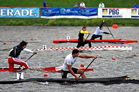 After Australian medals for Oceania, it was the turn of the South American continent to be honored with the wonderful win of the Brazilian Nivalter Santos de Jesus after a neck to neck sprint in the C1 category against the Lithuanian Szuklin. It was a also a good day for Latvia Alexsejs Rumjancevs who clinched his second gold in a range of 20 minutes but with the help of Krists Straume in the K2 200 meters. K2 women 200m final saw the reverse results of this morning 500 meters finals with the Ukranian pair I. Kmetova-M. Kohlova beating the Serbian sisters Moldovan by 4th hundreds of seconds! It was the turn after this event for the C2 Romanian World Champs to show their invincibility and to win the gold on the 200 meters after their victories in 500 meters and 1,000 meters. You call that a grand slam which was missed by the C4 Romanian team only seconds from a race won by the Hungarians Sik, Gyertyanos, Karsai and Boros that won finally the first Gold for Hungary that clinches also an impressive amount 6 silver and 4 bronze medals. The girls from Belarus K4 won the second goal medal for their country while the bronze medallist of the last World Championship Pavel Petrov led its C4 team to the first gold of the Championships