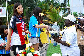 FISU EC member Silvanus LampteyIn the women’s competition, after the final 24 gates, Hsin I Tseng from Chinese Taipei took Gold medal, becoming World University Woodball Champion with a final round of 113 and 321 total. Silver medal went to Ying Chi Peng also from Chinese Taipei with a final round of 109 and 323 total. Cho Kwan Ng from Hong Kong concluded the final round with 108 strokes, totalling 336 strokes to collect the bronze medal.