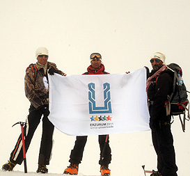 ERZURUM – A team of mountaineers climbed Mount Agri, one of Europe’s highest peaks and most challenging course to plant the FISU and 2011 Winter Universiades flags on its top.