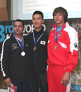 Medal Podium 50m Pistol Men Yesterday, September 15th, at the Shooting Range of the Army WKS Ślask Sports Club of Wroclaw were awarded the first medals in the three finals. The first individual gold medal – 50 m Pistol Men was awarded to LEE Dae Myung (KOR). This shooter won a quota place for the London 2012 Olympic Games at the 50th World Shooting Championship 2010 in Munich (individual silver medal-50 m Pistol Men ). The silver medal was won by Ebrihim BARKHORDARI (IRI) and the bronze, a first medal for the host country, went to Marceli KRZYSZTON (POL).