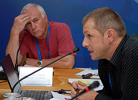 Milan Augustin, FISU Director for Winter Universiades (right) and Bob Philip, CTI Winter vice-Chair, during the “question and answer” session at the CSU meeting