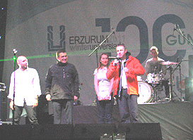 In the evening a rock concert featuring the band Gripin was staged at the campus of Atatürk University. Some 10,000 students attended the concert held in Atatürk University Stadium. Just before the Gripin concert, local music groups Yüksek Rock’m and Carmilla also performed. During the concert General Coordinator Bekir Korkmaz and FISU Winter Universiade Director Milan Augustin talked about the works conducted for WU games. The show ended with the fireworks held from the jumping towers.