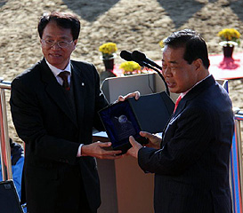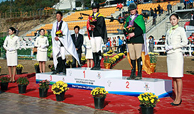 At the Ceremony, CISCA Chair Mr Kenny Chow officially thanked the Chairman of the Organizing Committee and Mayor of Sangju, Mr. Beck Sung-young by presenting him with the FISU souvenir trophy. Mr. Kenny Chow officially transmitted the FISU flag to the President of ADH Mr. Nico Sperle to be the organizer of the 10th edition of the World University Equestrian Championship which will take place in Aachen, Germany in 2012.