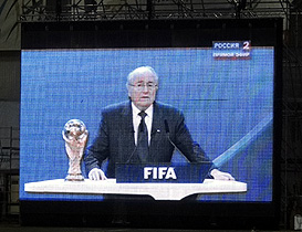 A big screen was installed in the football and athletics arena to broadcast a live 2018 World Cup bid announcement in Zurich that kept glued to the screen not only all the attendees of the 2,013 minute match but millions of people around the world looking forward to hear the name of the winning nation.