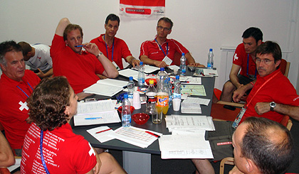 During the last part of the meeting, the team got the chance to follow a very interesting and enthralling presentation held by Leo Held. He was Swiss Coach of the Year 2008 and is the former personal coach of Sergei Aschwanden, the Swiss Bronze Medallist winner in Judo at the 2008 Bejing Olympics. He gave a very detailed and personal insight in his relation to the athlete and the work that was necessary to achieve the goal of winning an Olympic Medal, especially after two unsuccessful attempts in Sydney and Athens. It was a perfect preparation of the Swiss Team for the Universiade, which will hopefully be equally successful for us as the Olympics were for Sergei Aschwanden. It’s now the athletes who have to qualify for the Games with strong performances.