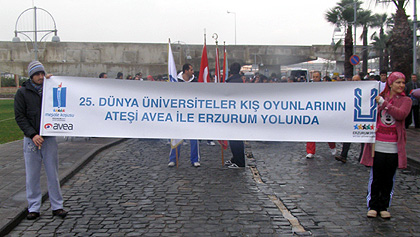 IZMIR – The Torch Relay for the 25th Winter Universiade in Erzurum has reached the city of Izmir, host city of the 23rd Summer Universiade in 2005 and was followed by big crowd. The Torch with the Unviersiade flame was placed on a platform which was set up in Cumhuriyet Square.