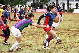The game was tied until the last minute when Thamara Rangel, 23 years old, received the ball free on the left side of the field and shot to score the only ‘try’ of the match. Karina converted the kick and UCL celebrated the title with victory on 7:0 against UFPE. USP settled for the bronze medal.