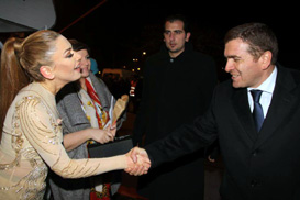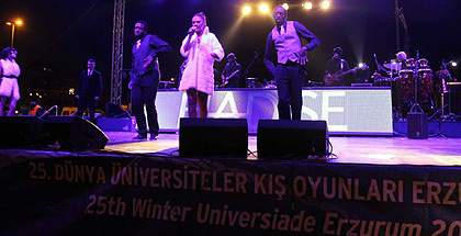 Hadise and Bekir KorkmazERZURUM – Famous Turkish pop star Hadise performed for two hours on stage at the concert organised by the 2011 WU General Coordination. At the end of her concert she thanked Mr.Korkmaz, General Coordinator of the 2011 WU. ’I’d like to thank Mr. Bekir Korkmaz and his team for giving me the opportunity to meet with you all. A great organization will be held in Erzurum and I’m inviting all people in İstanbul and Turkey to meet at the Anatolian Peak’, she said. Hadise will perform at the Opening Ceremony of 2011 WU.