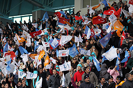 ‘Today, Erzurum is living one of its important historic moments’, PM Erdoğan commented. ‘We are hosting a very important guest – PM Papandreu – here today. I also like to thank the people from Dadaş for showing their great hospitality here in this cold weather. The Olympics were held in Greece. At the moment you see the 2011 emblem in every corner of Erzurum. This emblem represents the five continents and the continent’s friendship. In 3 weeks time student-athletes from 5 continents will come together in Erzurum. The heart of sport will beat in Erzurum. Erzurum is proud of hosting such a major sports event. As a Government we are proud of bringing the Universiade to Erzurum.’