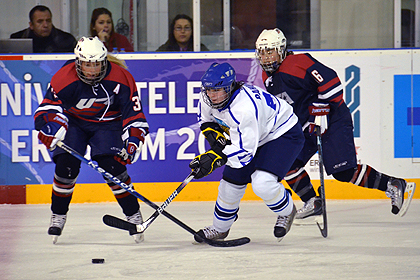 After a day of practice the women returned on the ice to face-off in the six-team tournament. Canada and Great Britain faced-off in a Commonwealth clash which was won by powerhouse Canada 14-0. The second game saw Finland play USA. The former bronze medallist (2009 WU) will without doubt once again be a medal contender, knowing that five players were part of the Finnish national team which won the bronze medal at the Vancouver Winter Olympics in 2010, i.e. goalie Anna Vanhatalo and forwards Anne Helin, Venla Hovi, Annina Rajahuhta and Saara Tuominen. In the first period Team Suomi immediately took the lead scoring twice. Team USA was able to put one behind the Finnish goalie while Finland drilled in a third bringing the score to a 3-1 victory. Slovakia beat host Turkey 20-0.