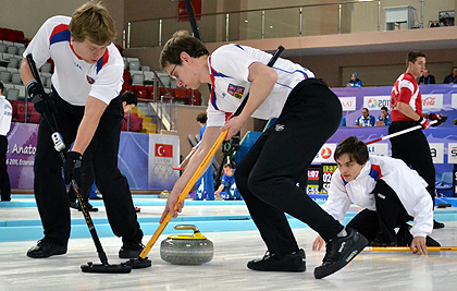 ERZURUM – Two close games in the men’s curling competitions this morning with Great Britain narrowly beating the Czech Team with a 6-5 score and curling powerhouse Switzerland beating Team Canada 7-6. Rather easy walkovers for Korea and Norway as the Koreans beat Team USA 11-2 while Norway kept the distance with newcomer Slovenia putting a 14-2 on the scoreboard. Sweden had no trouble gaining a big lead on host Turkey, beating the Turks 10-2.